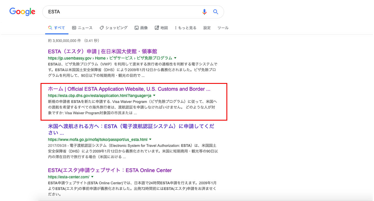 ※代行料を請求してくるサイトがあります!必ずESTA公式サイトにアクセスしましょう。