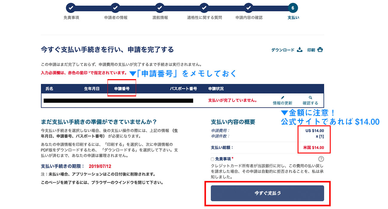 きちんとESTAの公式サイトから申請をすれば、申請料金$14.00ドル(約1,400円)だけで済みます。