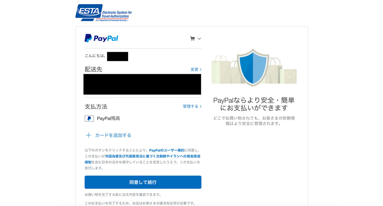 支払い方法(PayPalもしくはデビットカード・クレジットカード)を選択し、続行