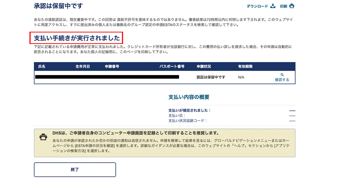 申請と支払いが完了すると、申請の承認待ち状態となります。